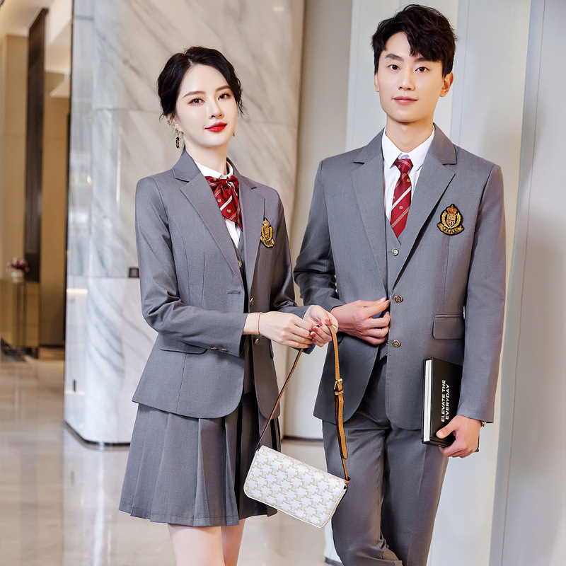 Setelan gaya kuliah pria dan wanita, pakaian kerja profesional pria dan wanita musim semi musim gugur, tiga potong jk setelan temperamen, seragam sekolah siswa, pakaian kerja SMA