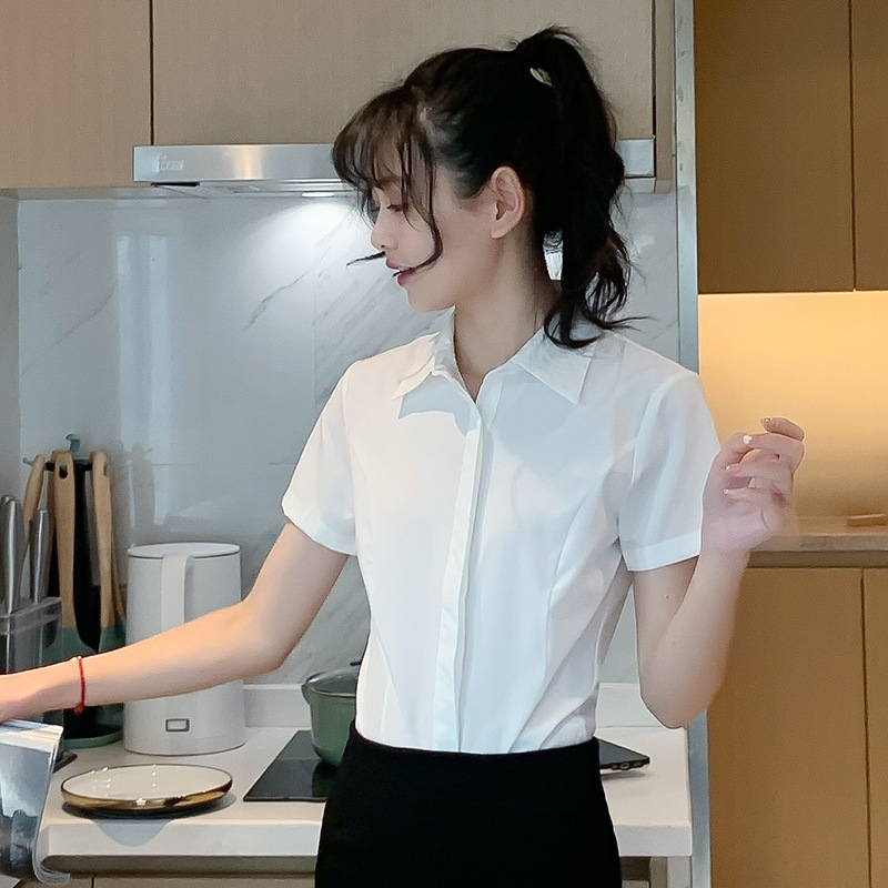 2023 gaya kuliah pakaian JK kemeja putih pakaian formal wanita musim panas gaya Korea pakaian formal kemeja bisnis lengan pendek wanita teman dekat