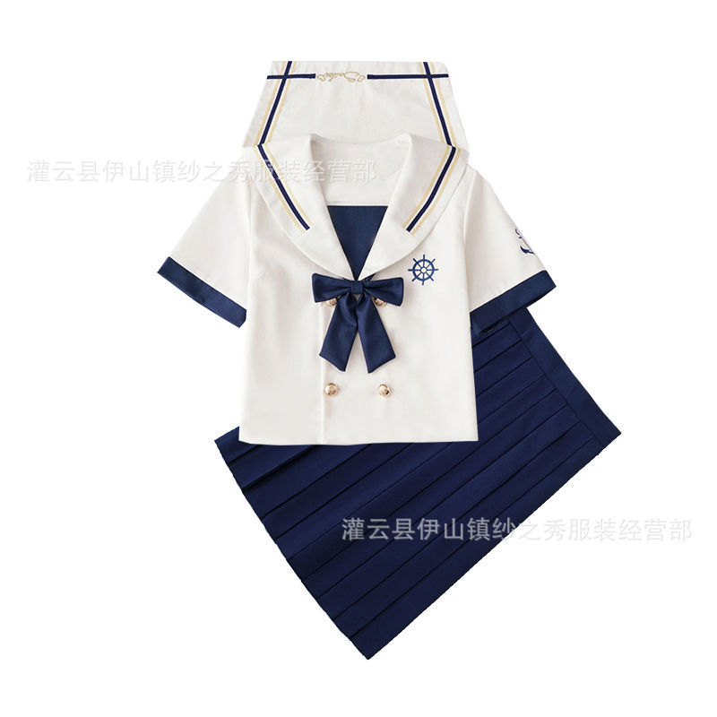 Pakaian Wanita Musim Panas Rok Terusan Seragam JK Gaya Kampus Dua Set Pakaian Musim Panas