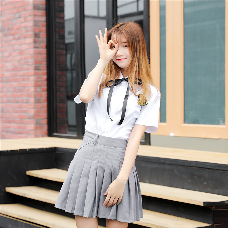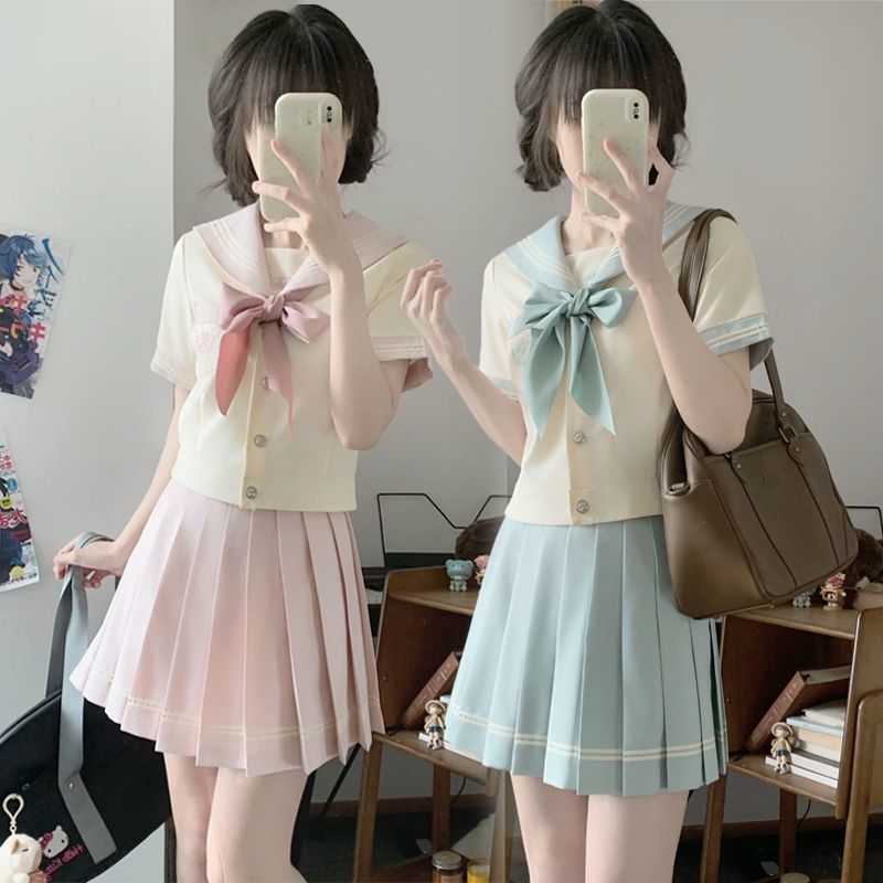 JK Seragam JK Orisinil Gaya Kampus Atasan Pakaian Lintah Wanita Lengan Pendek Tiga Set Asia Tenggara Lainnya