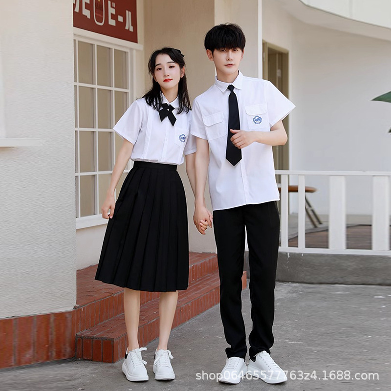 Seragam JK Gaya Jepang Seragam Sekolah Musim Panas Taiwan dengan Kemeja Putih Sekolah Menengah Seragam Kelas Wisuda Gaya Sekolah Siswa SMA