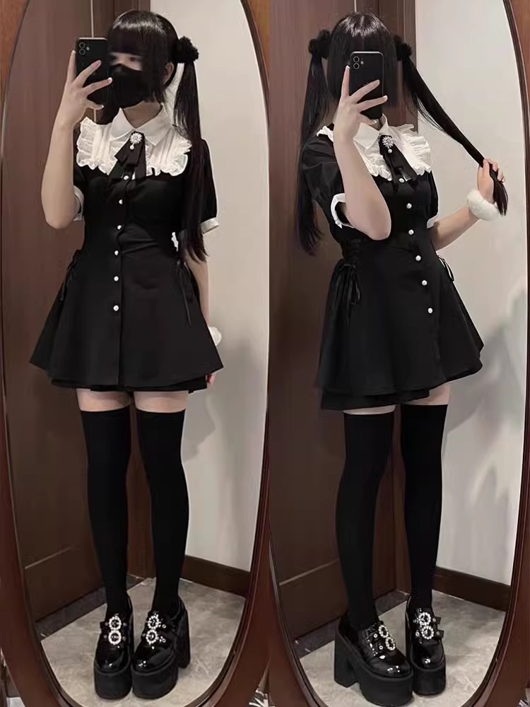 Gaun Tali Pinggiran Jamur Seragam JK Gaya Sekolahan Gaya Jepang Musim Panas Rok Pendek Putri Mengurangi Usia Gaya Desain Model Baru Wanita