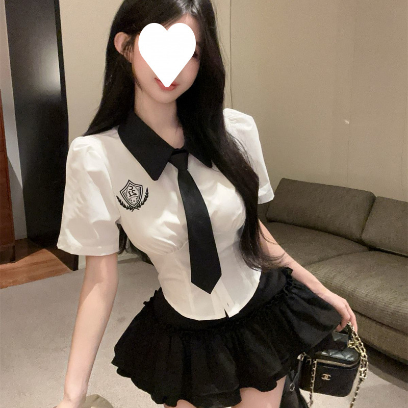 Seragam sekolah gaya Korea musim panas, kemeja seragam jk gaya preppy Inggris, kemeja putih lengan pendek, atasan dasi mengurangi usia