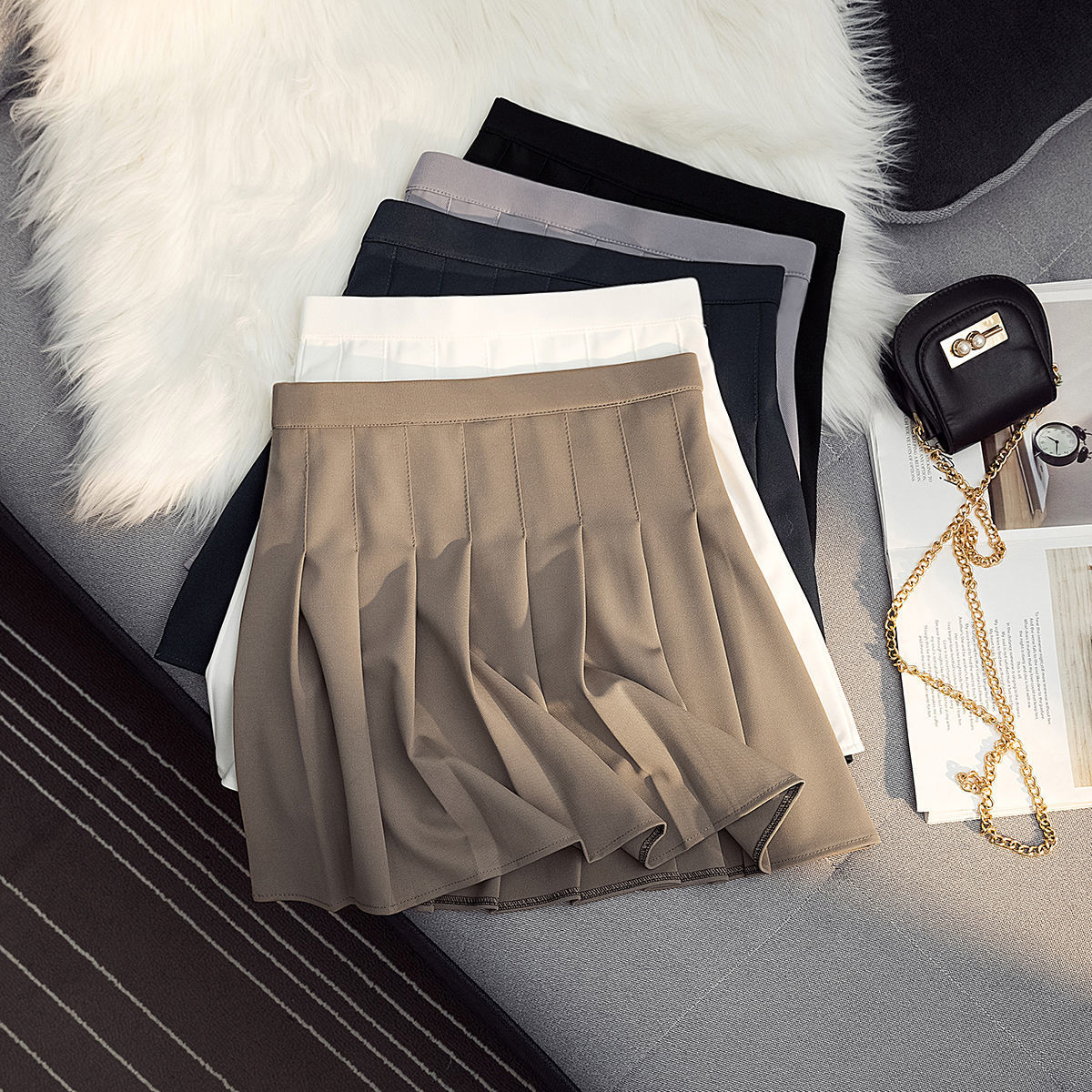 JK Pakaian Seragam Rok Lipit Perguruan Tinggi Musim Panas Rok Setengah Badan Gadis Gaya Jepang Seragam Sekolah Rok Pendek Pakaian Pertunjukan Kampus