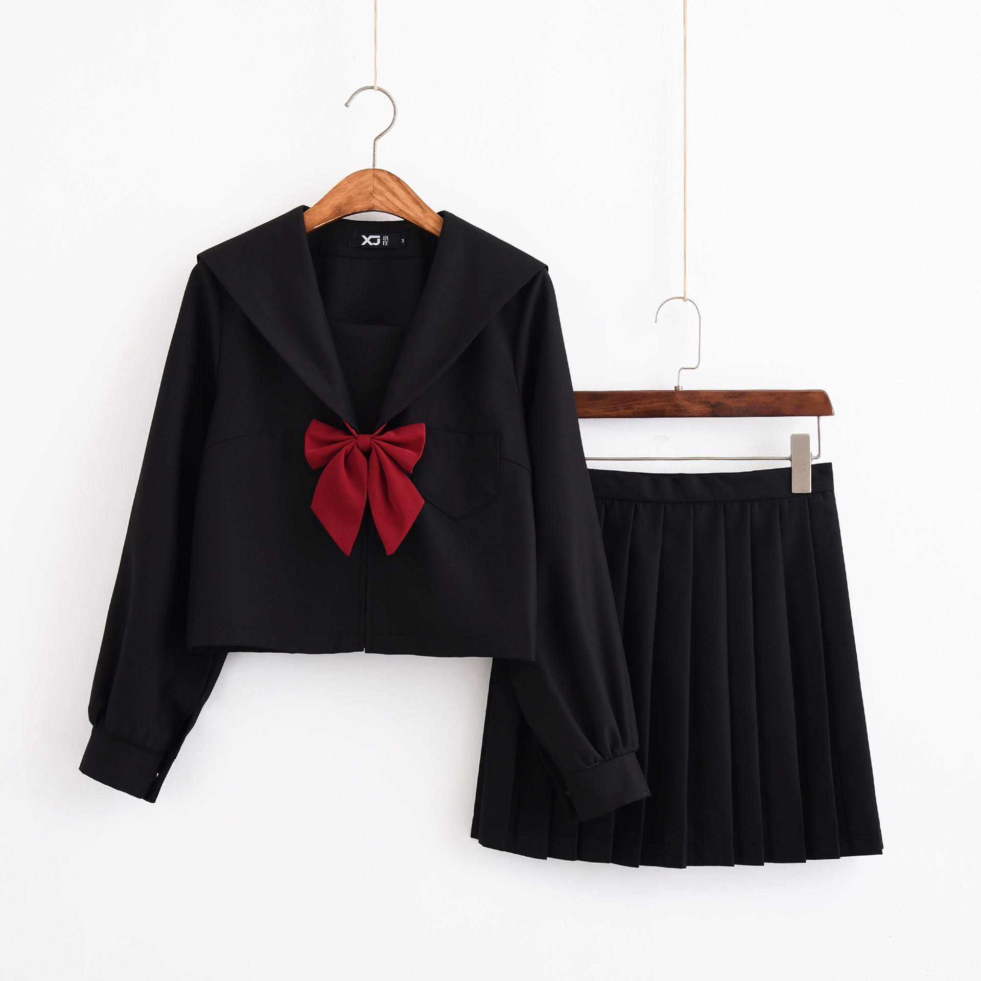 Seragam JK Jepang hitam setelan pelaut ortodoks gadis lembut seragam kelas siswa segar setelan lengan panjang