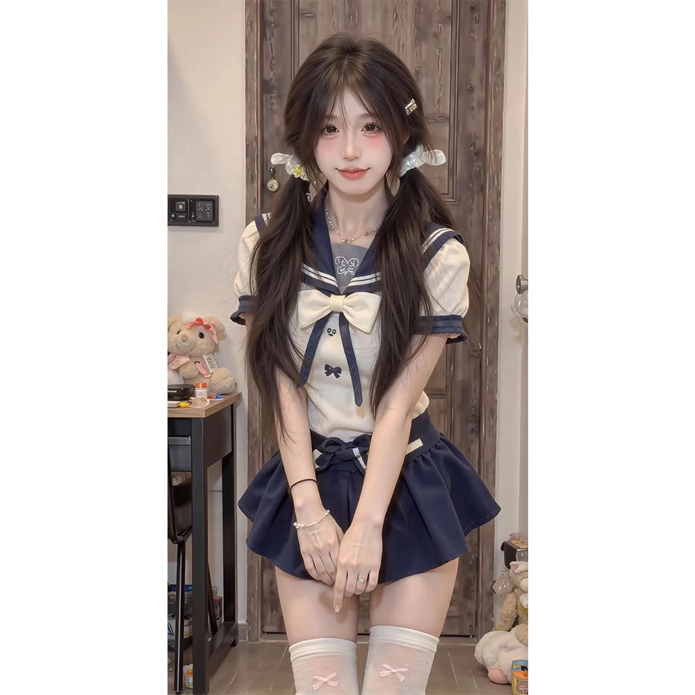 Pakaian pelaut gaya Kasuga 2025 Pakaian pelaut berkerah angkatan laut wanita manis seragam gaya preppy pakaian berlipit gaya preppy