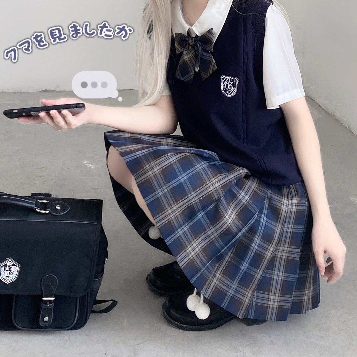 Z11 Ooka Rita Tiga Potong Seragam JK Asli Awal Musim Gugur Wanita Gaya Sekolah Jepang dengan Dasi Kuping Lengan Pendek