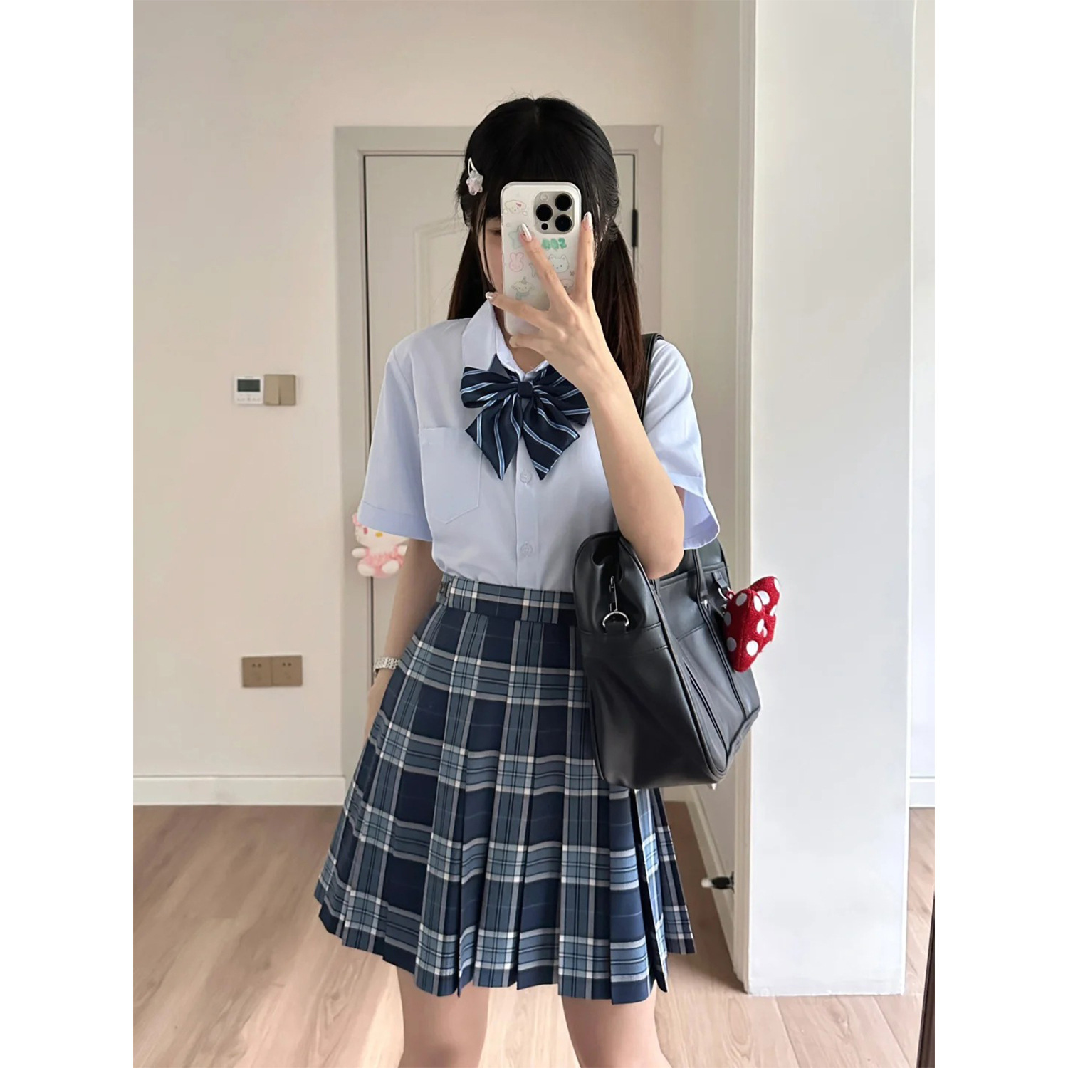 Kemeja seragam jk gaya kuliah wanita, setelan rok kemeja putih seragam sekolah Inggris gaya Korea baru musim gugur 2023
