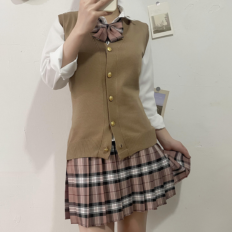 JK Sweater Model Dasar Rompi Baju Atasan Gaya Sekolah Baju Rajutan Longgar Baju Atasan Jas Jas Rok Berlapis