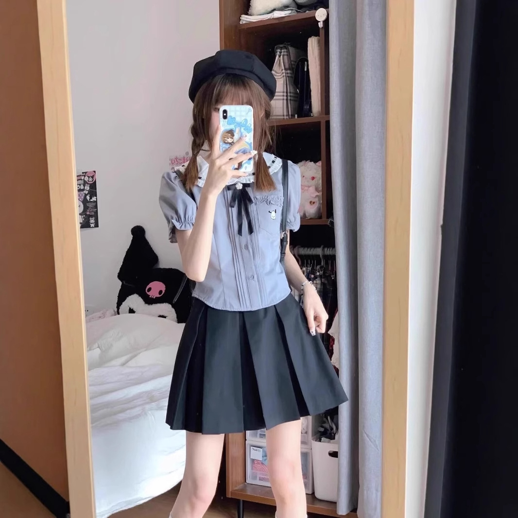 Baju Atasan Baru Musim Panas 2025 Seragam JK Model Pendek Wanita Kemeja Kecil Gaya Sekolah Manis Kerah Boneka Jepang