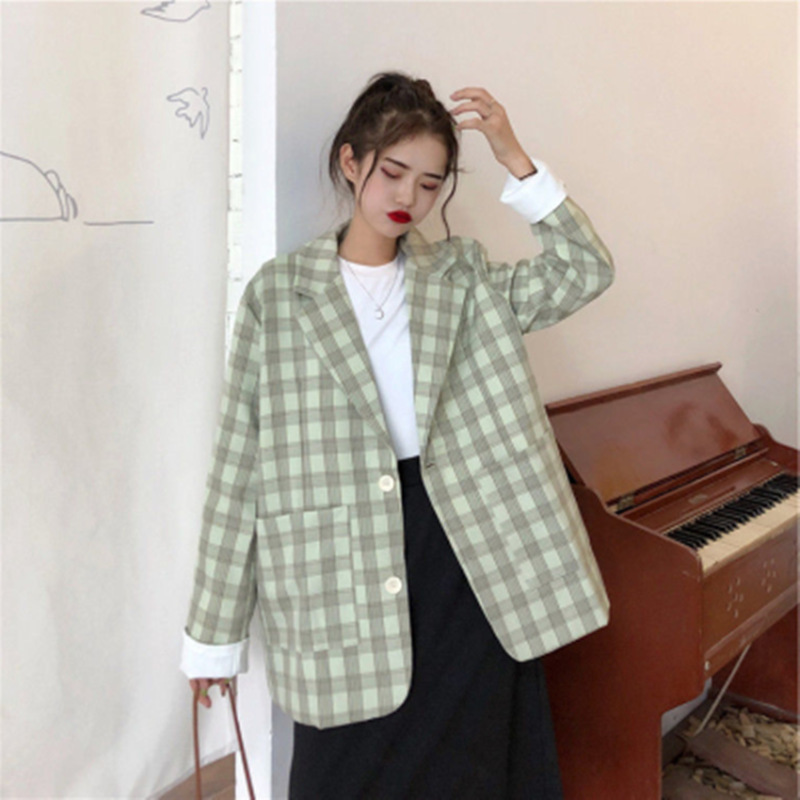 Blazer longgar modis Korea gaya Eropa dan Amerika baru untuk wanita musim semi dan musim gugur, jaket setelan wanita gaya Hong Kong, atasan pelajar.