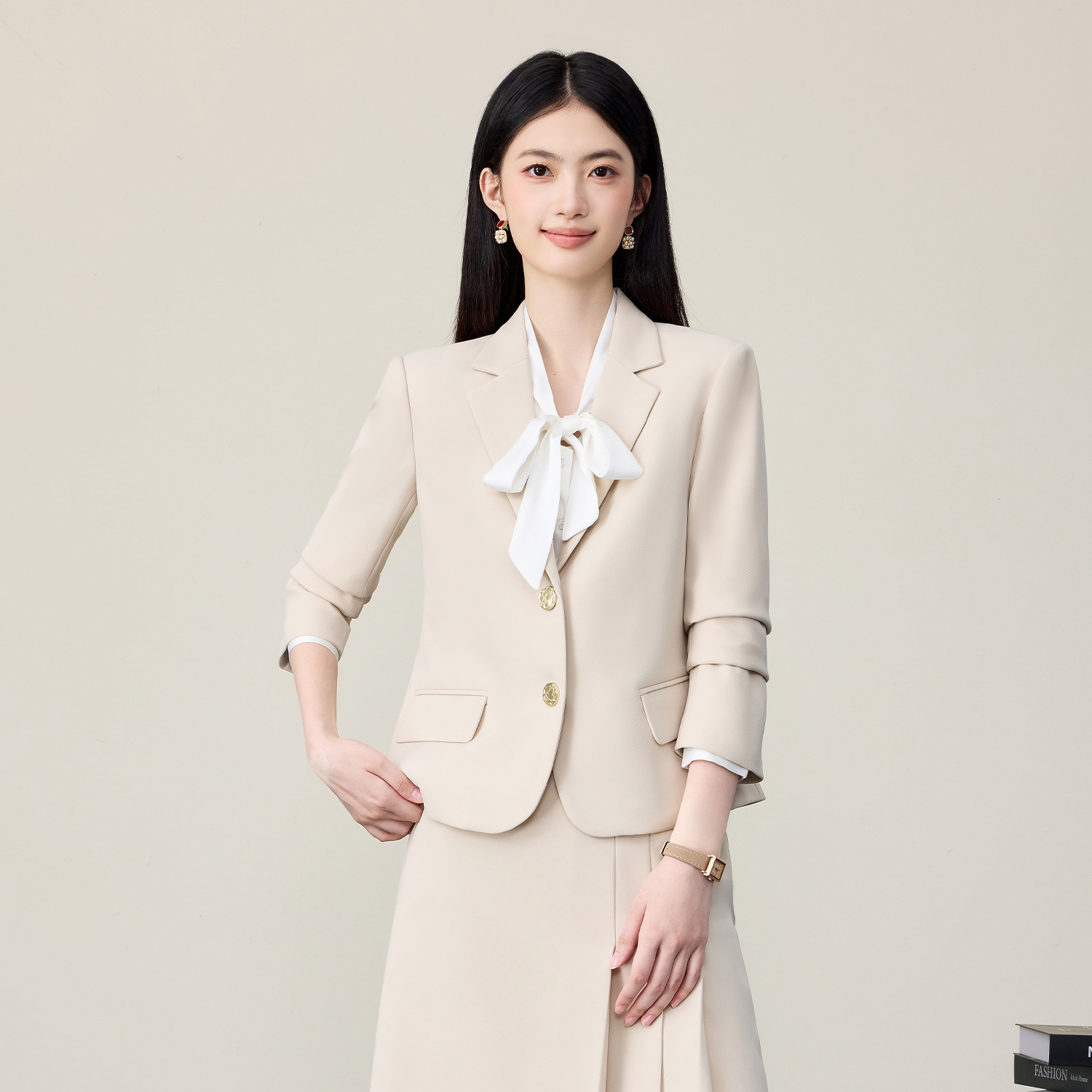 Blazer wanita bertubuh mungil gaya Korea longgar dan ramping, gaya kuliah musim semi 2025, blazer serbaguna untuk pelajar, pakaian musim gugur