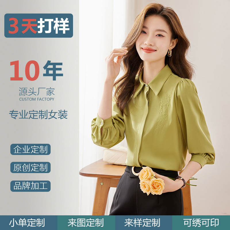 Kemeja putih wanita, baju bisnis lengan panjang slim-fit gesper tersembunyi ukuran besar musim gugur 2023