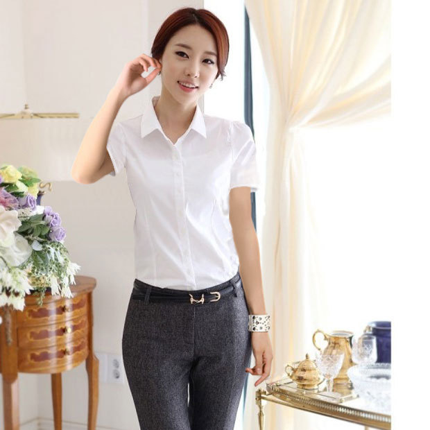 Kemeja Sifon Putih Pakaian Formal Pakaian Formal untuk Wawancara Siswa Musim Panas Lengan Pendek Wanita Pakaian Formal Jas Pegawai Negeri Sipil