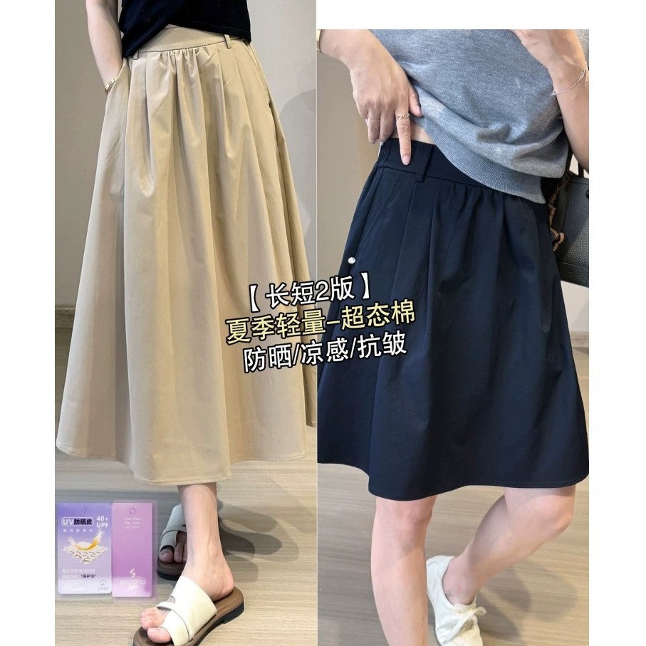 Xiaoliang [Anti Kerut] Musim Panas Celana Rok Pendek Katun Super Bentuk Ringan Rok Payung Tipe A Rok Panjang Anti Matahari Rasa Dingin Rok Setengah Badan