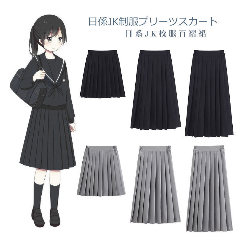 Rok Seragam JK Manis Gaya Jepang Seragam Sekolah Mudah Dipadu Padan Seragam Sekolah Warna Polos Lipit Rok Setengah Panjang