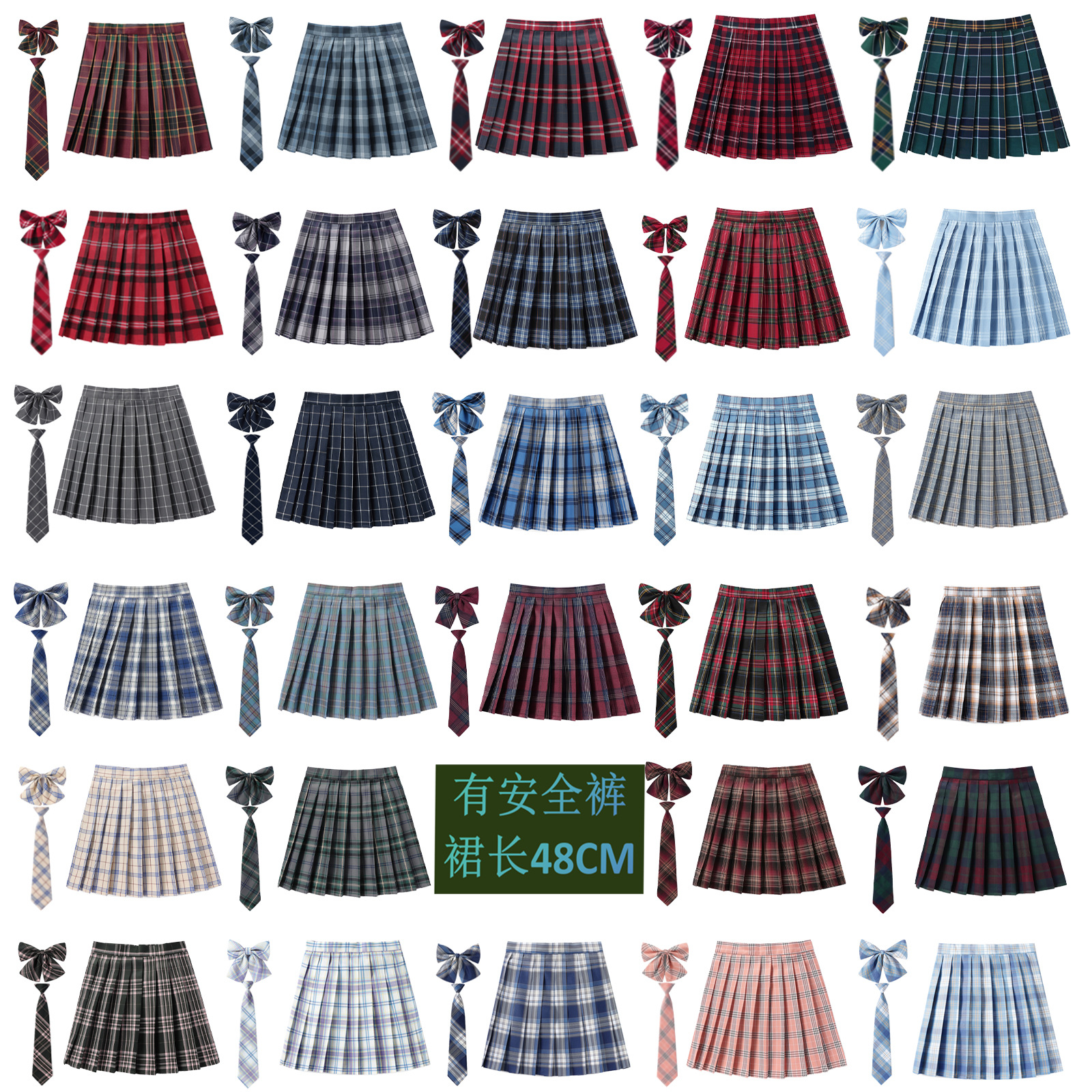 Celana Pengaman Barang Ada 48CM Seragam Sekolah Pinggang Tinggi Gaya Perguruan Tinggi Inggris Setengah Tubuh Berlapis Kotak-Kotak Seragam Sekolah Rok Wanita Lipit Lipat