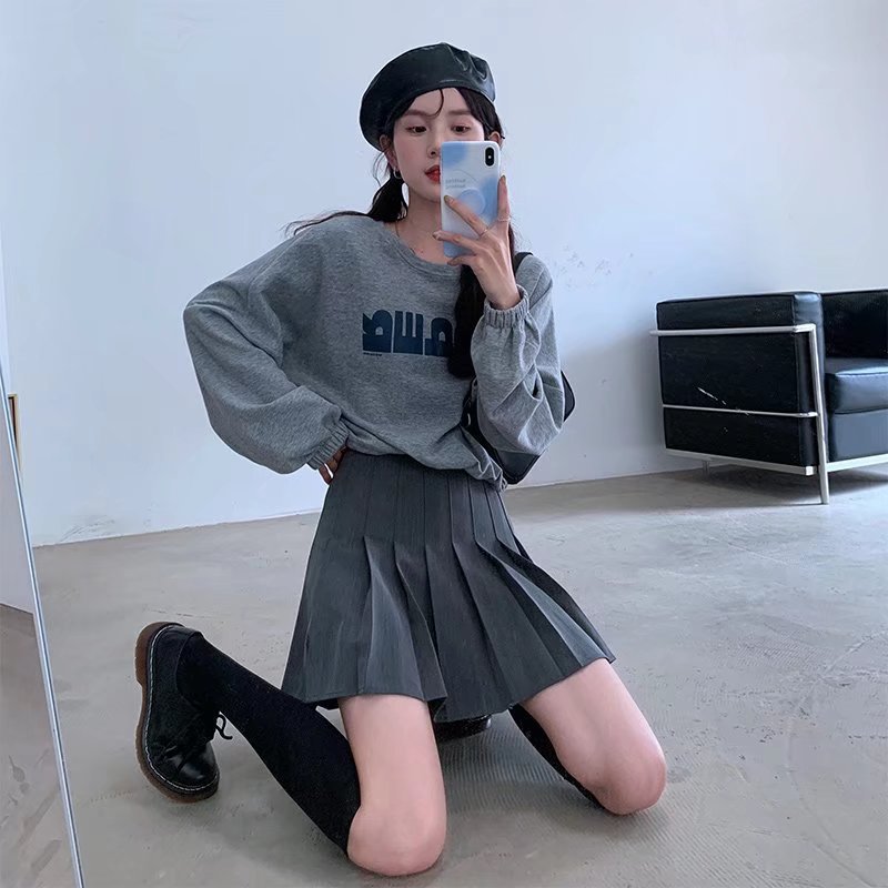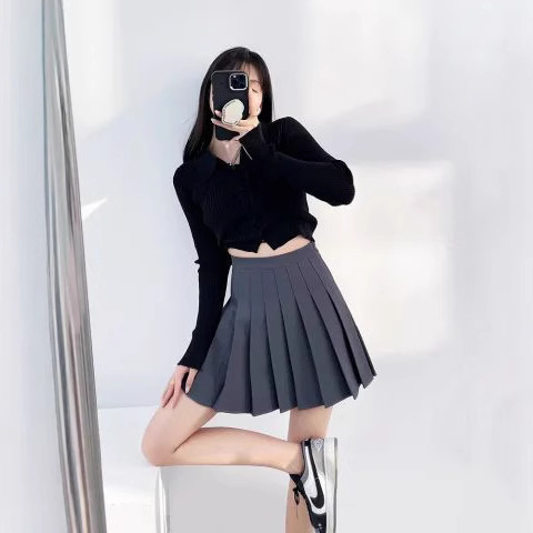 Rok berlipat 2023 baru musim panas wanita pinggang tinggi warna abu-abu setelan Musim Semi jk1934 rok pendek baru musim panas
