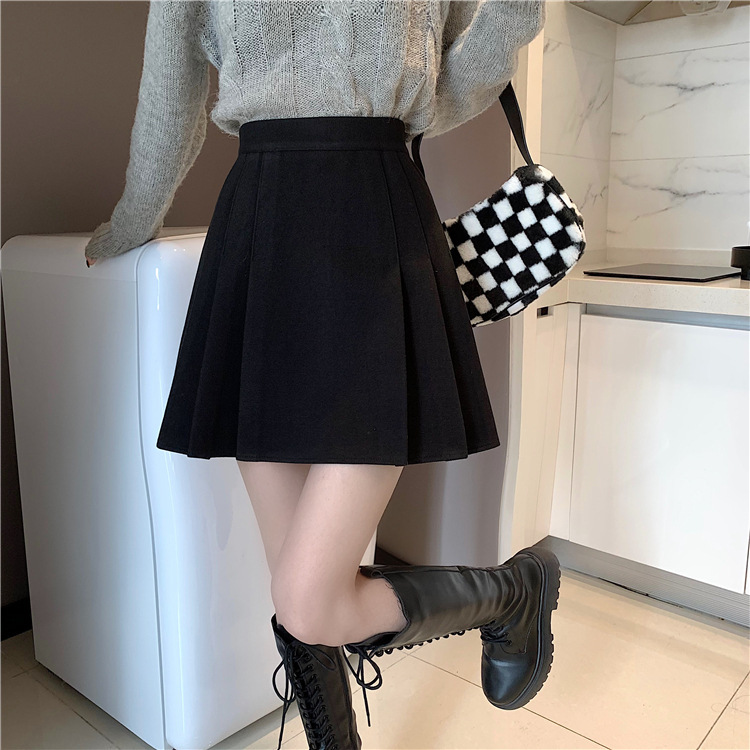 Rok ketat anak perempuan, Bawahan hitam pinggang tinggi, gaya Korea, Rok lipit a-line, musim semi, baru, 2024