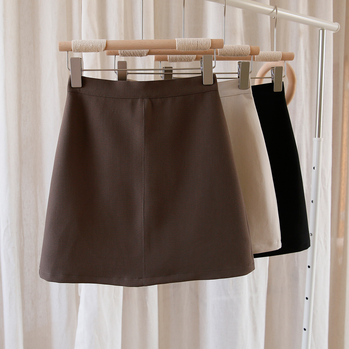 Rok a-line pinggang tinggi untuk wanita, rok setelan cokelat kecil, rok ketat pelangsing hitam musim semi dan musim gugur baru 2024