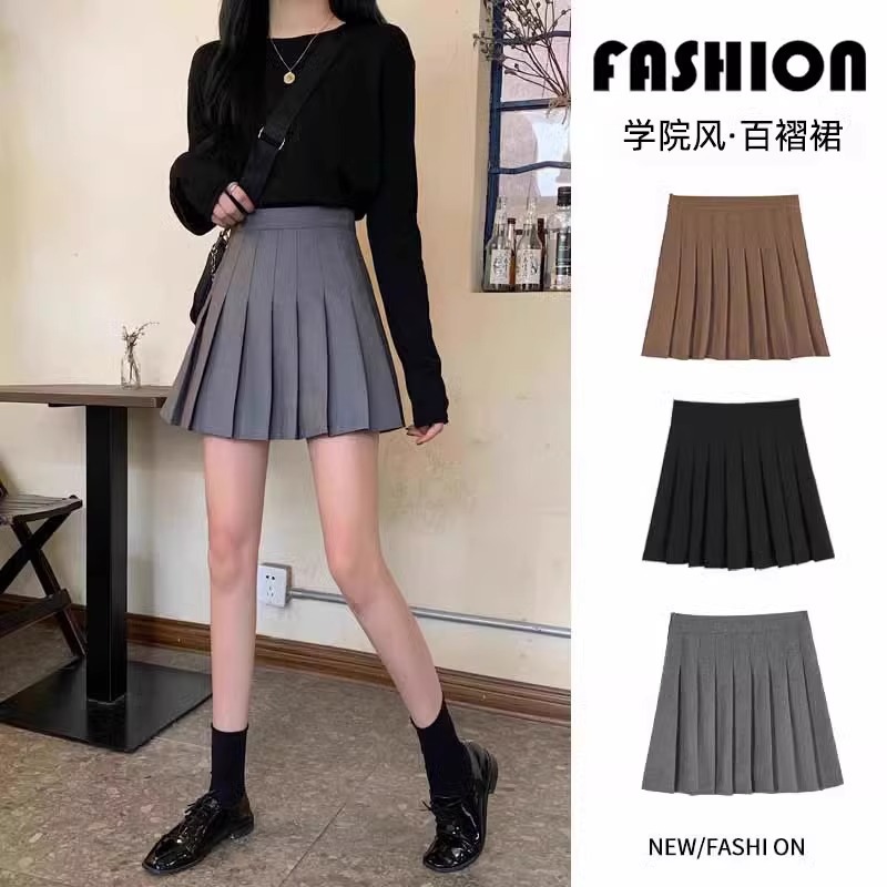 Rok Lipit Warna Polos Rok Pendek Kasual Gaya Kampus Anti Cahaya Gadis Cantik Rok Setengah Badan Jk Terlihat Langsing Pinggang Tinggi Musim Panas Trendi