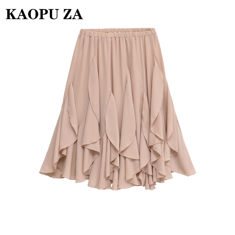 Pakaian Wanita KAOPU ZA Rok Setengah Badan Desain Modis Model Baru Musim Panas 2025 Rok Midi Pinggang Tinggi Tidak Beraturan