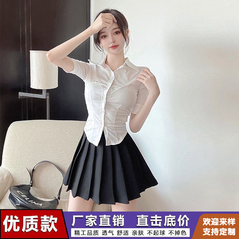 JK Baju Atasan Kemeja Pelangsing Pinggang Set Lengkap Wanita Baju Atasan Rok Wanita Gaya Kampus Lengan Pendek Kemeja Putih Terlihat Kurus Setelan Gadis Pedas