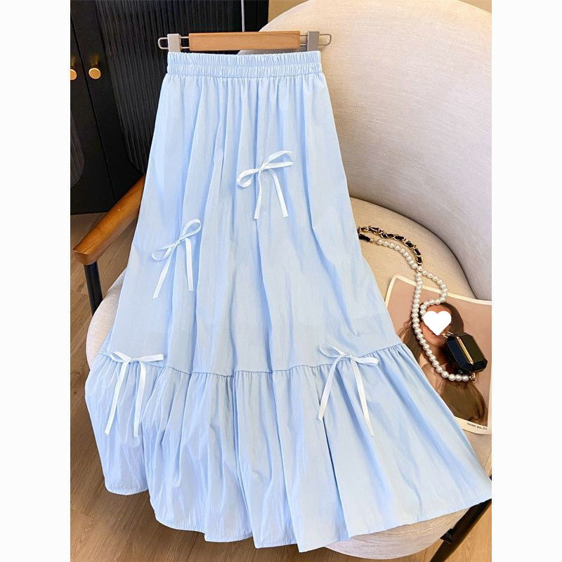 Rok Setengah Badan A-line Pinggang Tinggi Pita Kupu-Kupu Manis Model Baru Musim Semi 2025 Rok Panjang Yamamoto Ayun Besar Terlihat Langsing Ketat Model Panjang Sedang
