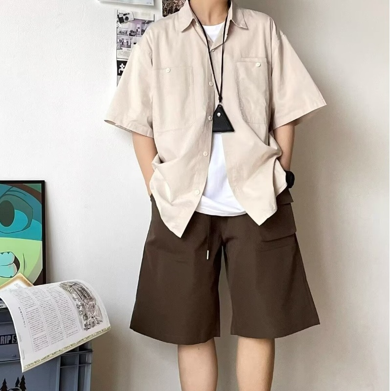 Kemeja Lengan Pendek Pakaian Kerja Retro Gaya Jepang Musim Panas Kemeja Kasual Berbentuk Siluet Model Dasar Mudah Dipadu Padan Longgar Pelajar Pria Wanita Trendi