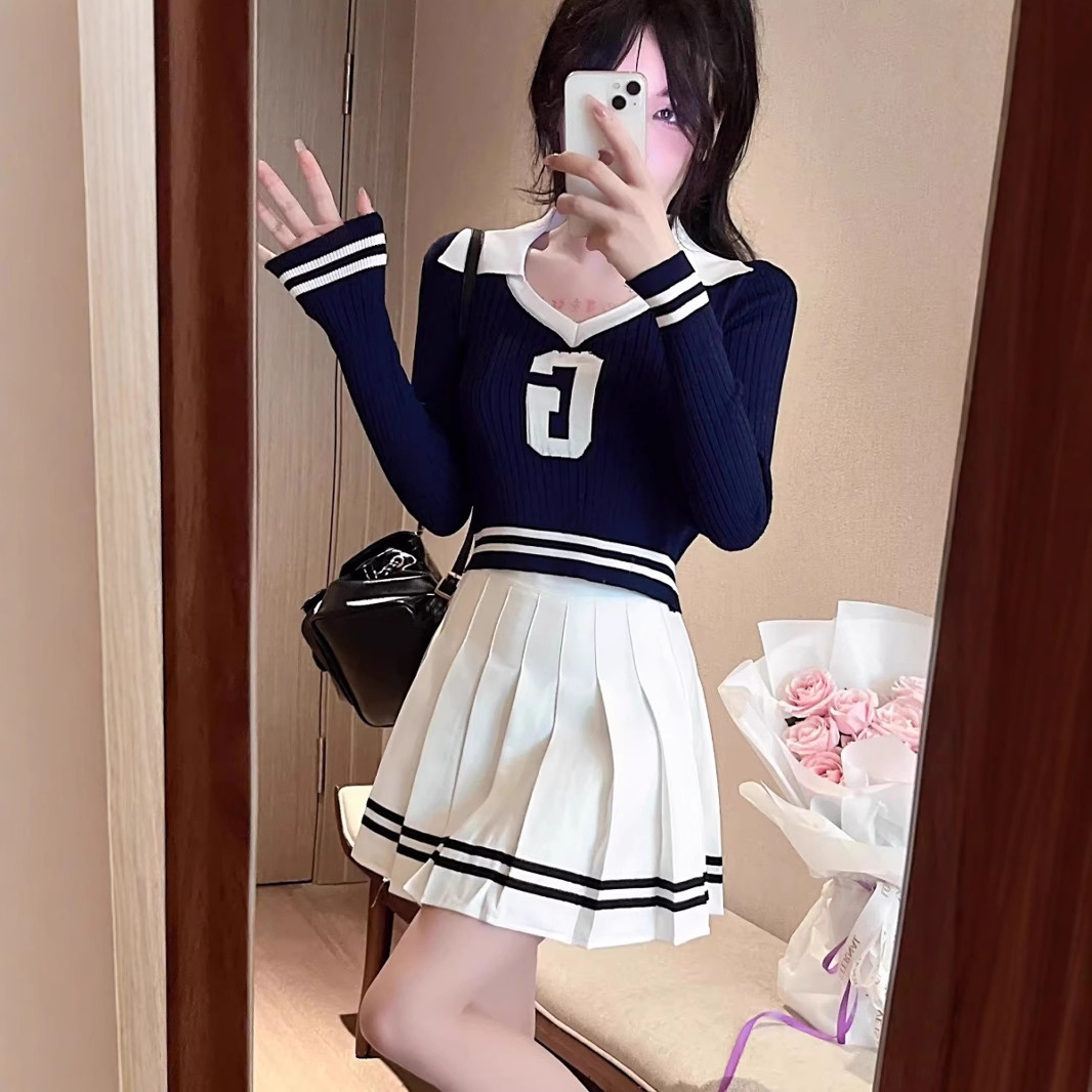 Rok Setel Model Baru Musim Gugur Musim Dingin Gaun Dalaman Gaya Korea Gaya Kampus Lembut Jaket Kardigan Murid Wanita Manis Berkelas