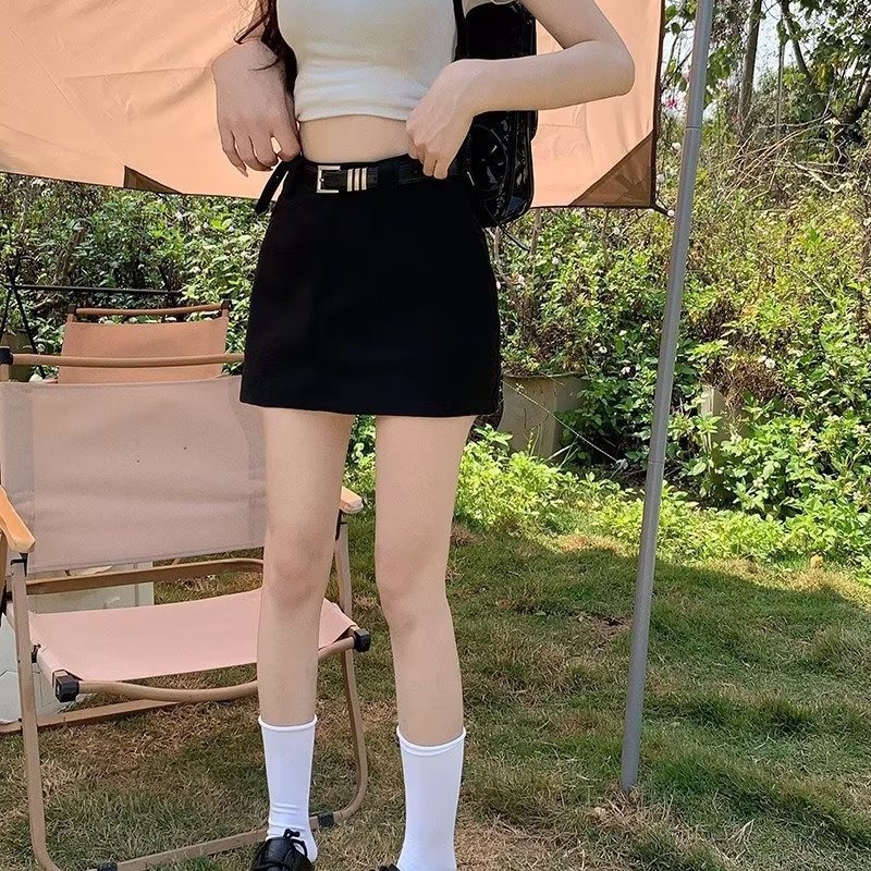Rok pendek pinggang tinggi wanita, rok pendek sederhana pinggang tinggi musim gugur dan musim dingin warna solid jk, rok pendek anti-paparan