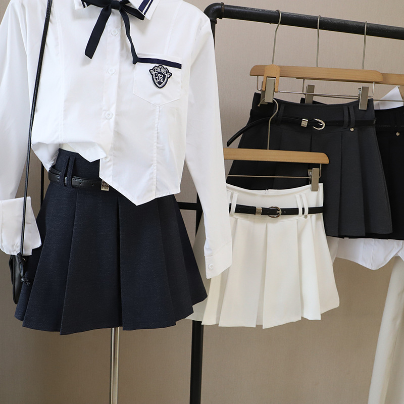 18YX2581 Eropa dan Amerika 2025 Perdagangan Luar Negeri Luar Negeri Luar Negeri Manis dan Pedas Gaya Kampus Bordir Rok Setengah Badan Pinggang Tinggi Set JK