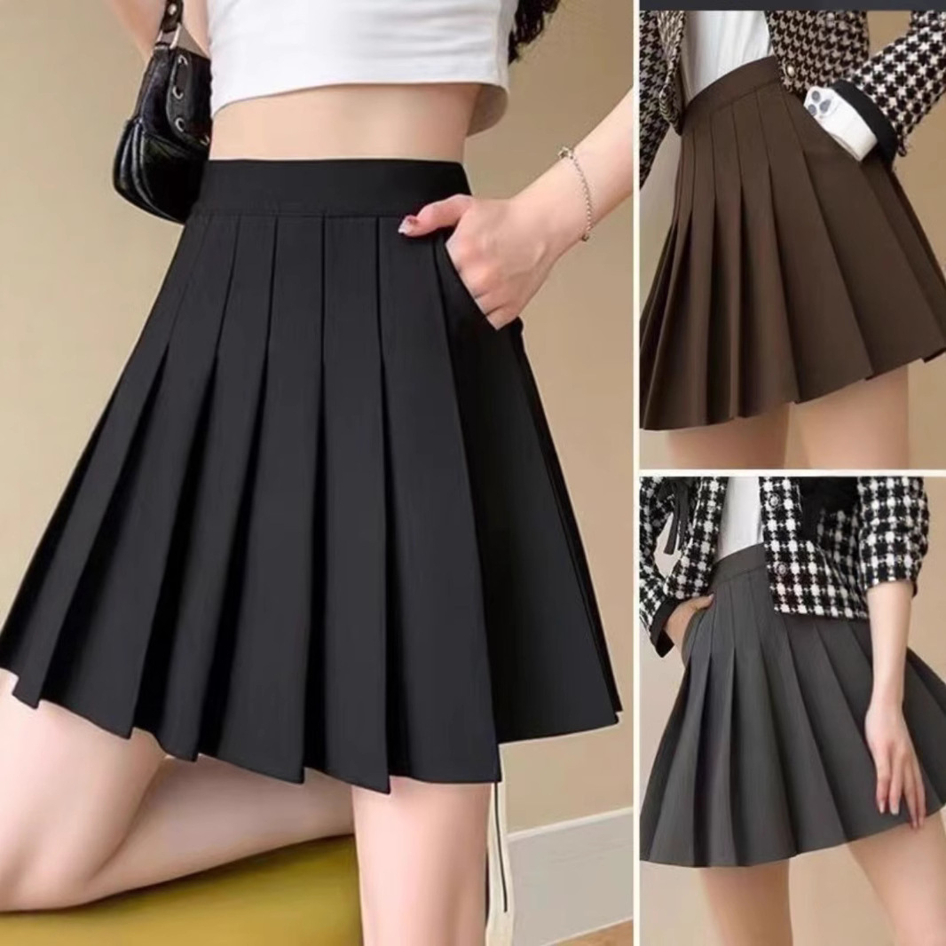 Rok lipit JK, Rok lipit + celana keselamatan + ritsleting + kancing, rok seragam Musim Semi dan musim panas, rok pendek musim gugur dan musim dingin