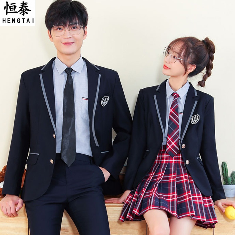 Setelan pakaian gaya kuliah wanita awal musim semi pria dan wanita gaya sama seragam sekolah pelajar rok berlipat jk setelan jaket Inggris