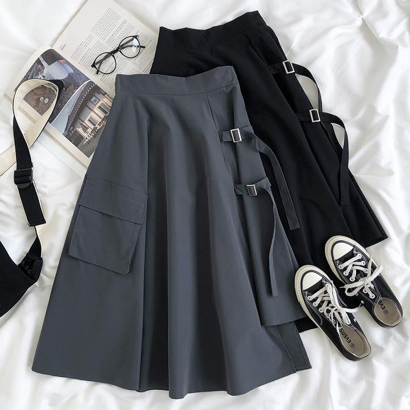 [Koleksi 5911 Orang] Ins Gelap Hitam Hitam Tidak Beraturan Rok Setengah Panjang Siswa Pinggang Tinggi
