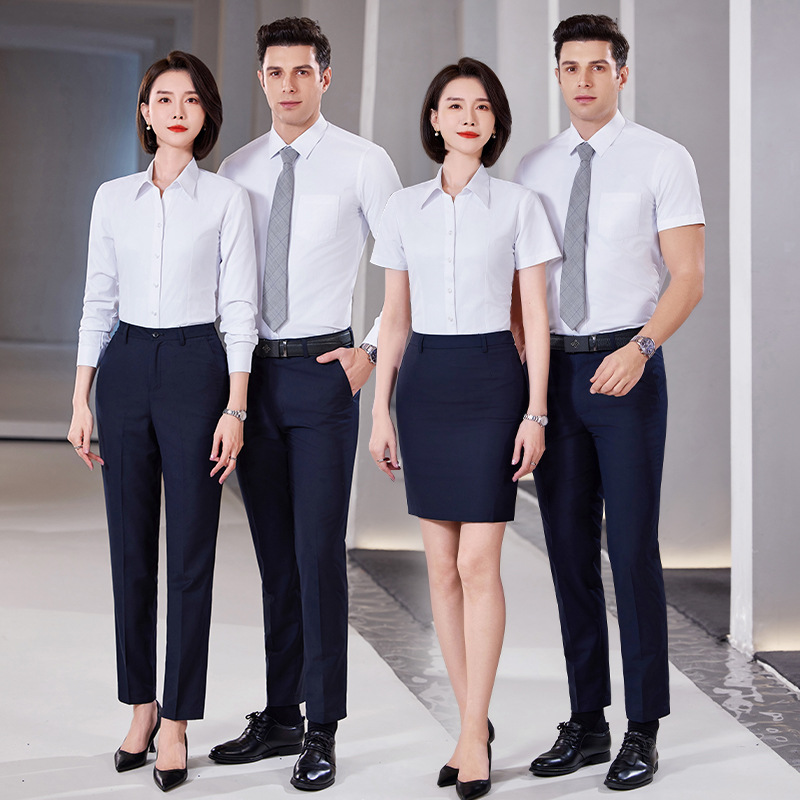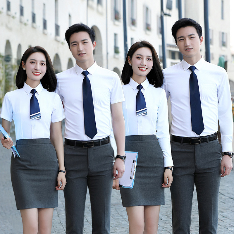 Kemeja pria dan wanita sama profesional lengan panjang baru kemeja bisnis mahasiswa mahasiswa bordir LOGO overall
