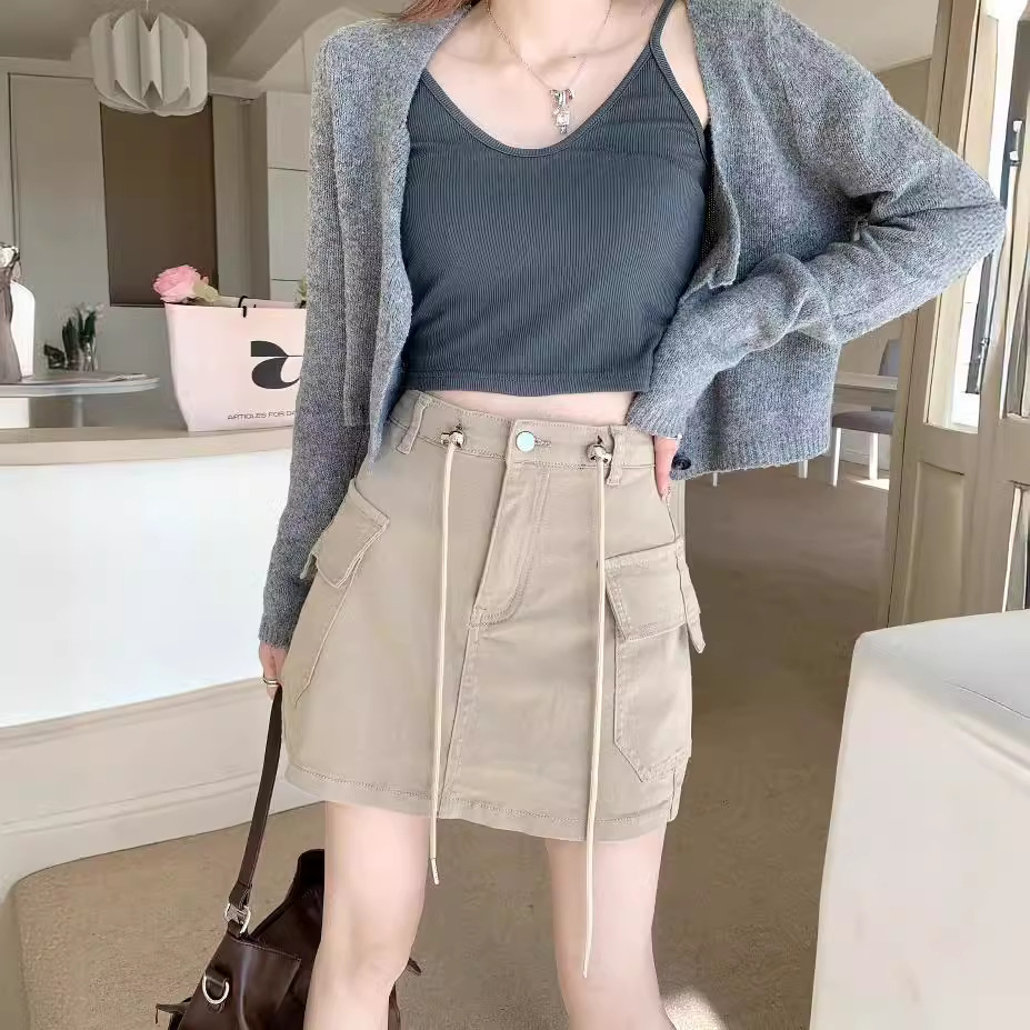 Rok gaya pakaian kerja wanita, rok pinggul Denim a-line pinggang tinggi anti eksposur baru musim panas 2023 untuk siswa perempuan