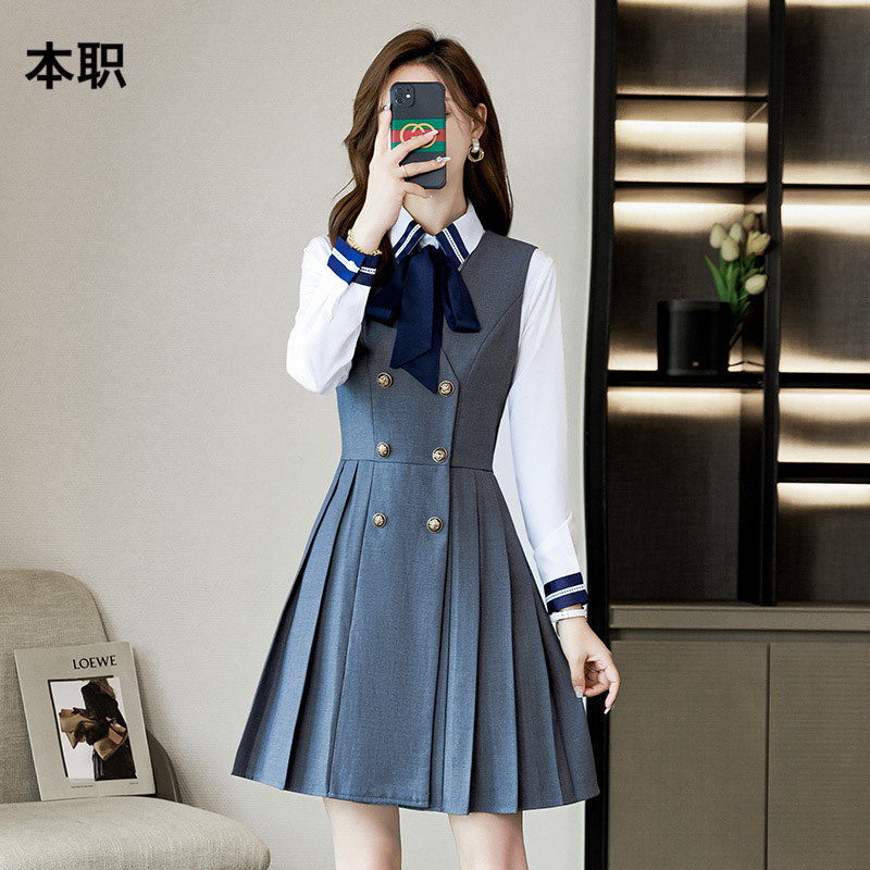Pakaian seragam JK gaya kuliah wanita, pakaian kerja profesional TK gaya Korea dua potong