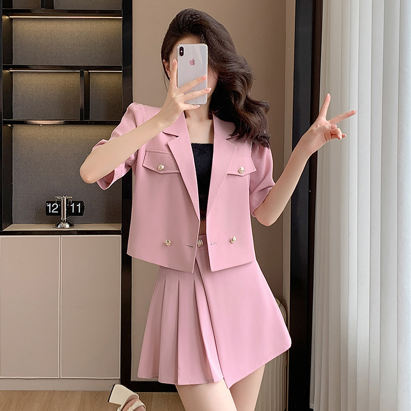 Setelan pakaian profesional wanita musim panas, setelan pakaian profesional wanita, tipis, hotel, meja depan, JK, rok lipit, setelan dua potong