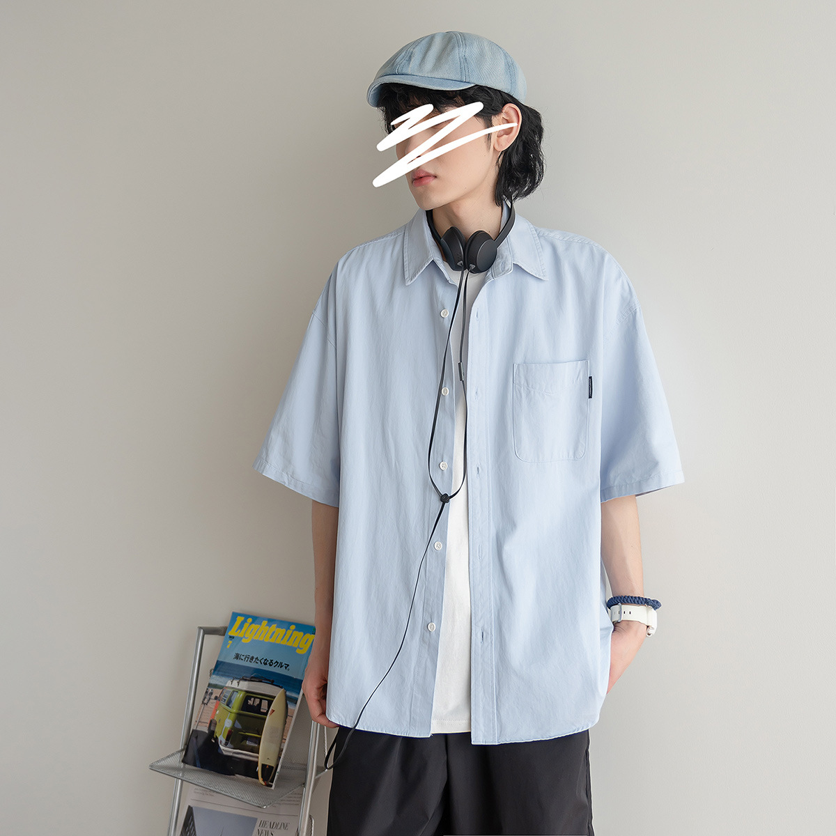 Baju kerja lengan pendek netral untuk wanita, kemeja lengan pendek pelajar wanita, baju kerja kasual trendi longgar serbaguna musim panas gaya netral untuk wanita