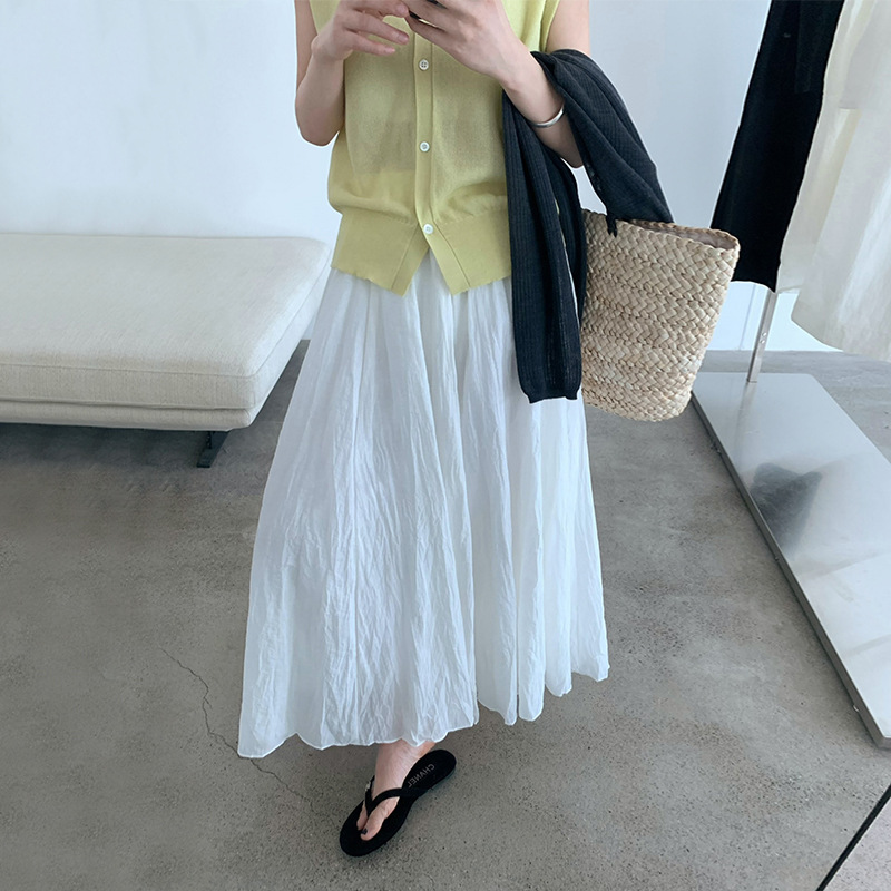 TG Rok Setengah Badan Bertekstur Lipit Lembut Gaya Korea Rok A-line Terlihat Langsing Pinggang Elastis Model Baru Musim Panas 2025 Wanita 24910