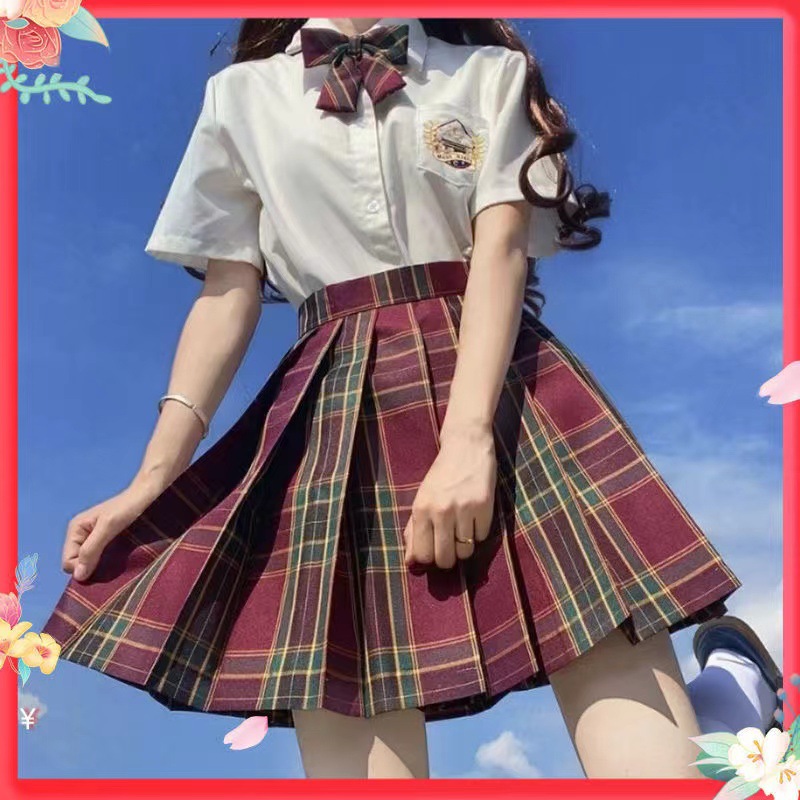 Hew pohon kotak-kotak dasar JK seragam gaya kuliah Jepang rok berlipat a-line wanita musim panas baru