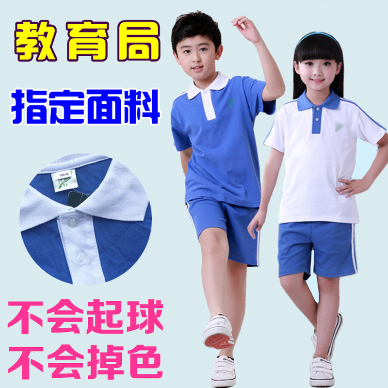 Shenzhen seragam sekolah dasar pria dan wanita, kaos polo menyerap keringat, celana pendek lengan pendek, seragam sekolah musim panas pelajar sekolah dasar pria dan wanita grosir