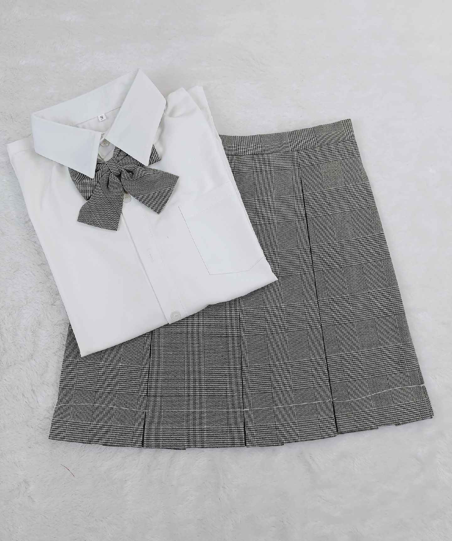 Abu-abu kotak-kotak delapan kotak lipit --- produk selesai kotak-kotak gaya Jepang ortodoks JK rok lipit rok kotak-kotak rok posisi garis
