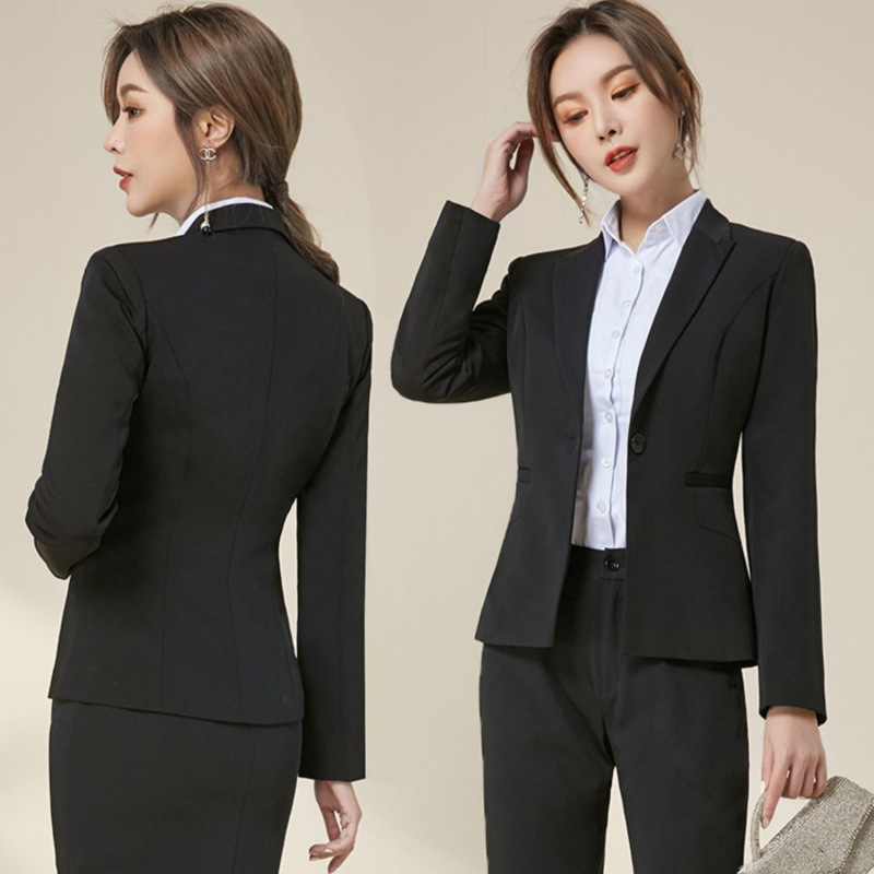 Pakaian Formal wanita setelan kuliah mahasiswa PNS wawancara pakaian kerja setelan Musim Semi dan Musim Gugur Hitam setelan kecil profesional wanita