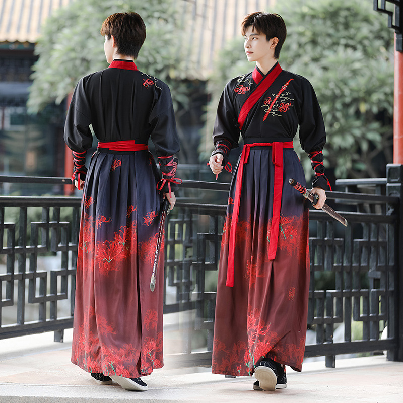 Hanfu Lengan Panjang merah gelap asli kostum kuno pria, kostum seni bela diri gaya Tiongkok, pakaian kelas Peri Qi pelajar gaya kuno chivalrous musim gugur