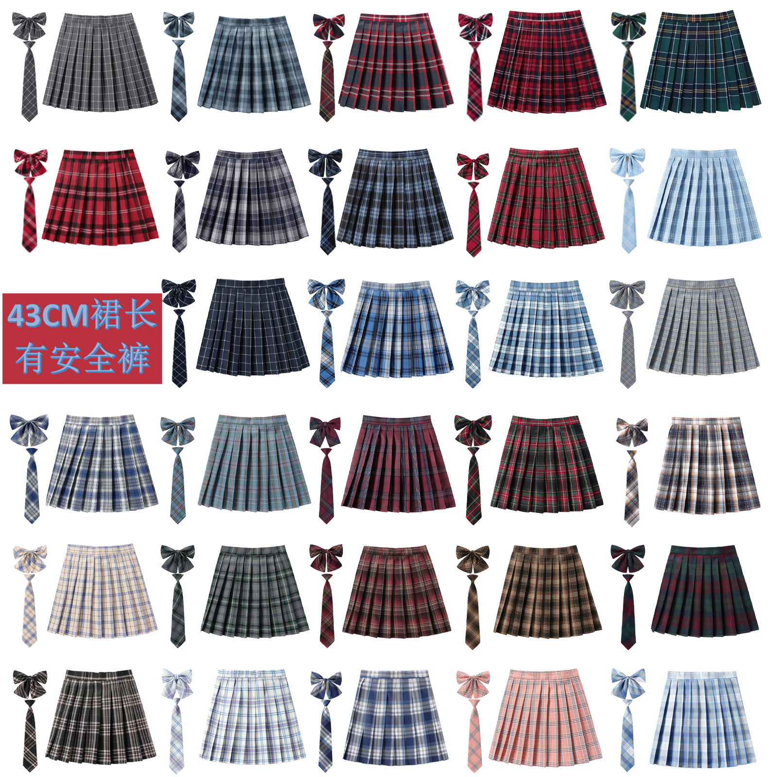 Lapisan Dalam Keamanan 43CM Rok Pendek Lipit Kotak-Kotak Anti Terawat Seragam Sekolah Pinggang Tinggi Seragam Sekolah Seragam Taman Rok Wanita Kerja