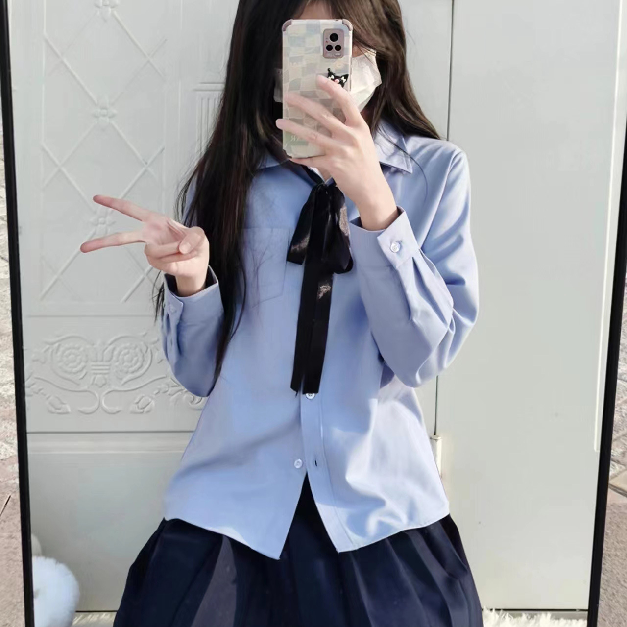 Xingkeyao kemeja lengan panjang pelajar wanita, kemeja lipit organ gaya Jepang, seragam kelas semua cocok