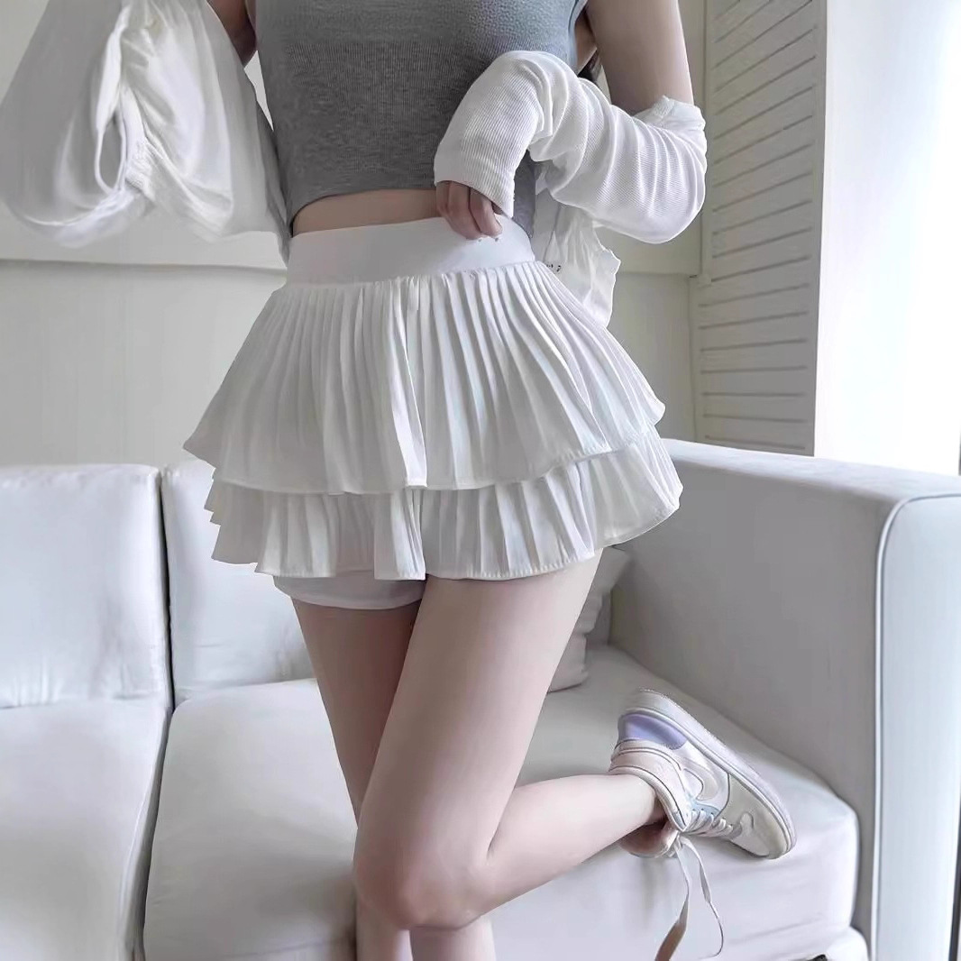 Rok pendek wanita, rok kue dua lapisan, rok pendek Semua cocok musim panas anti-paparan, rok pendek anak perempuan pinggang tinggi, rok a-line