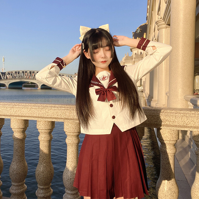 Seragam jk asli bordir lengan panjang gadis buruk pelaut ortodoks setelan siluet kota set penuh Pabrik rambut lurus